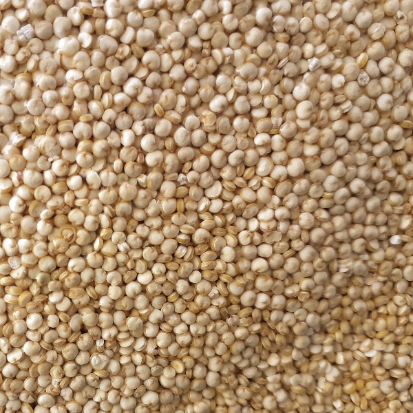 Weißer Quinoa stammt aus den Anden Südamerikas und gilt als wertvolle pflanzliche Eiweißquelle.